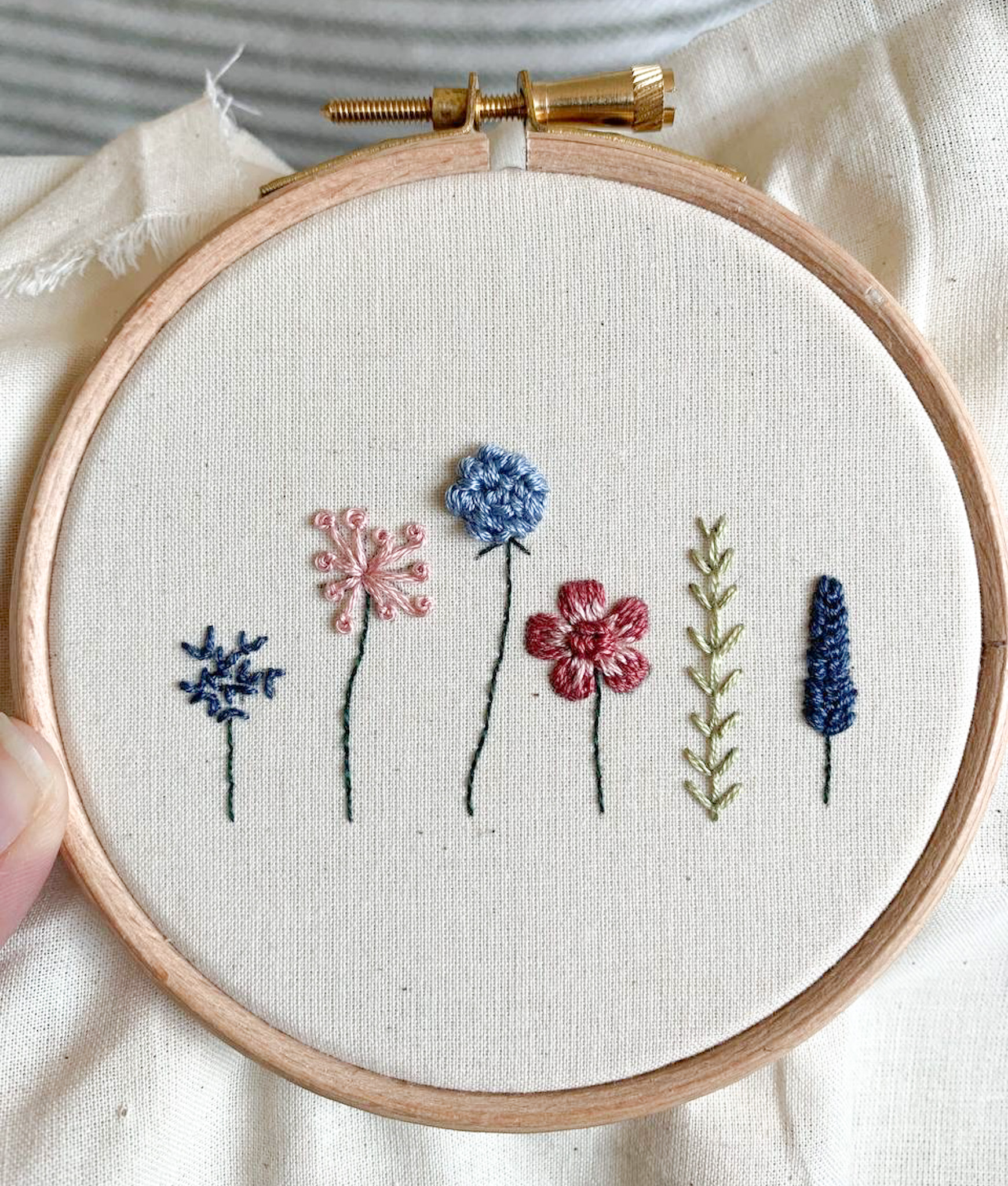 When Kathryn first picked up a needle, she only knew a handful of beginner stitches. She loved embroidery but didn’t yet feel confident – she often wondered if she was “doing it right” and wasn’t sure how to keep progressing, or what to stitch next.